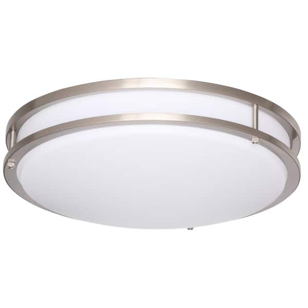 16 in. Modern Brushed Nickel Dimmable LED Integrated Flush Mount with Frosted Shade for Kitchen