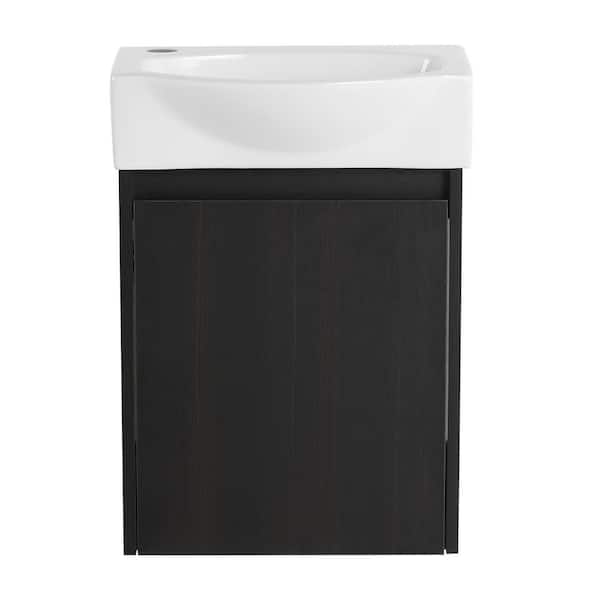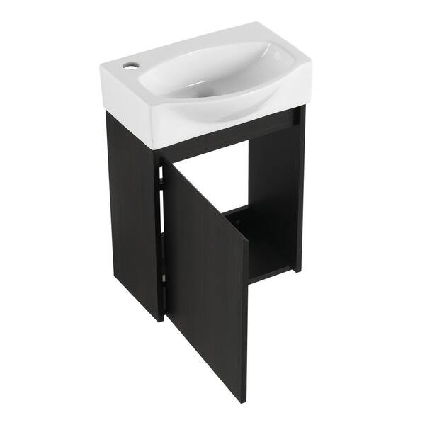 16 in. W Wall Mounted Bath Vanity in Black with White Cultured Marble Top