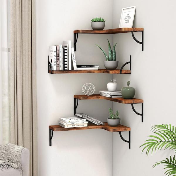 16 in. W x 11.4 in. D Rustic Red Decorative Wall Shelf Corner Floating Shelves Wall Mounted Set of 4