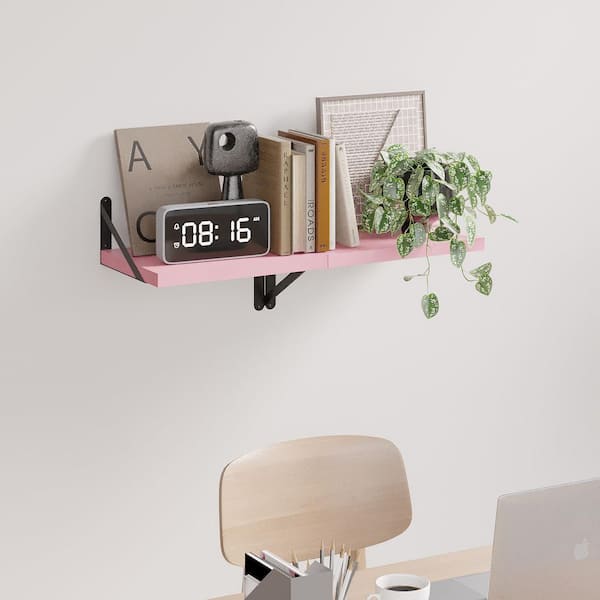16 in. W x 12 in. D Pink Wood Floating Shelves, Wall Mounted Wide Deep Storage Decorative Wall Shelf (Set of 2)