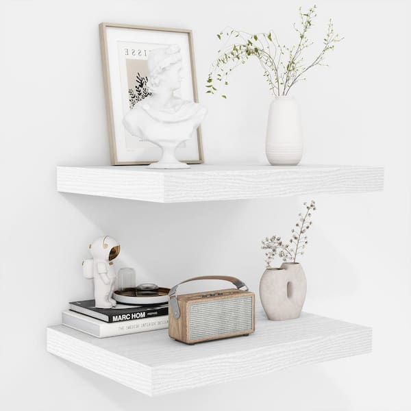 16 in. W x 12 in. D Rustic White Floating Shelves Decorative Wall Shelf 2-Pack