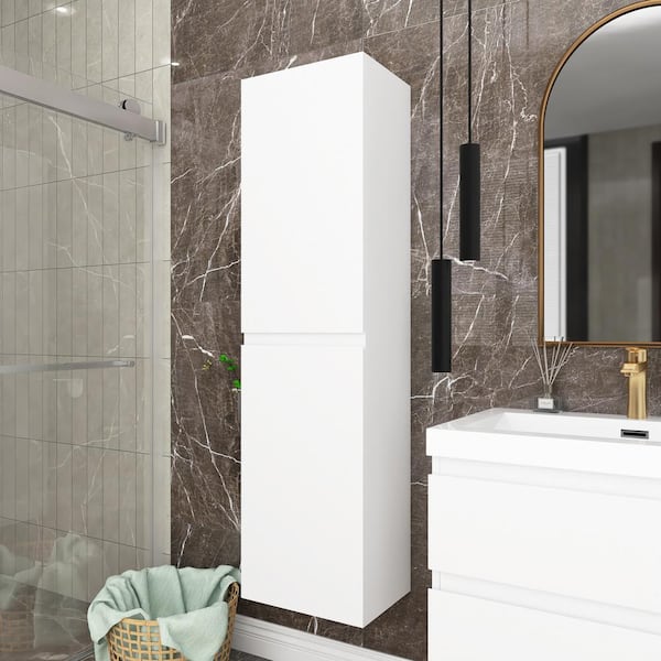 16 in. W x 12 in. D x 60 in. H Bathroom Storage Wall Cabinet in HG-White
