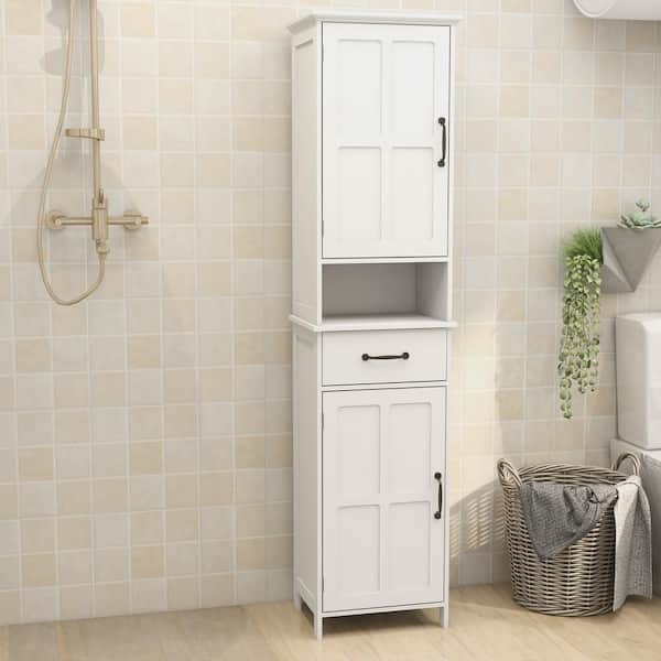 16 in. W x 12 in. D x 65 in. H White Freestanding Linen Cabinet with Drawer and 5 Tier Shelf