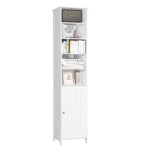 16 in. W x 13.5 in. D x 72 in. H White Freestanding Tall Floor Bathroom Linen Cabinet with Door and Adjustable Shelves