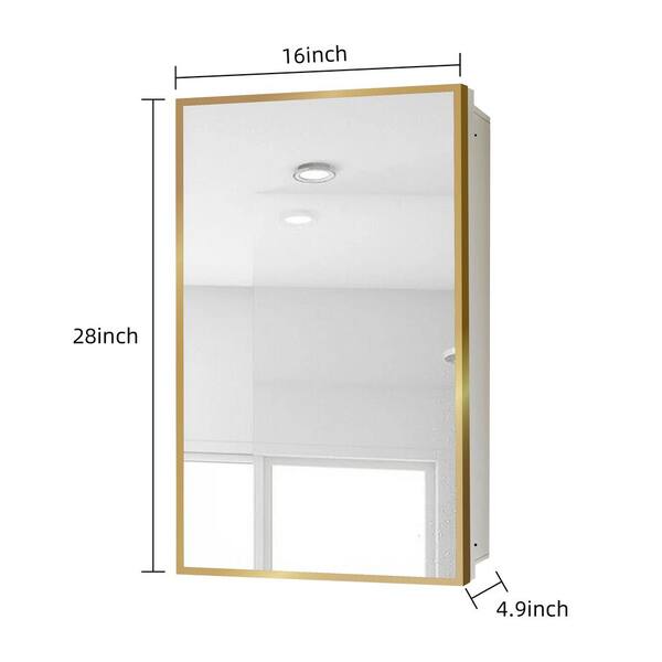 16 in. W x 28 in. H Rectangular Gold Iron Framed Surface or Recessed Bath Medicine Cabinet with Mirror