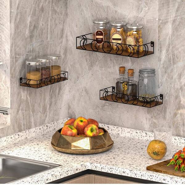 16 in. W x 5.1 in. D Moon Pattern Design Brown Decorative Wall Shelf 3 Pack