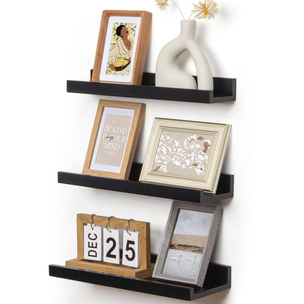 16 in. W x 5.5 in. D Black Picture Ledge Shelf, Decorative Wall Shelf (Set of 3)