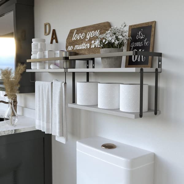 16 in. W x 5.7 in. D White Wood Decorative Wall Shelf, Wall Mounted Floating Shelves (Set of 2)