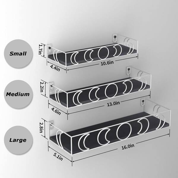 16 in. W x 5 in. D Black Silver Moon Phase Decorative Wall Shelf (Set of 3)