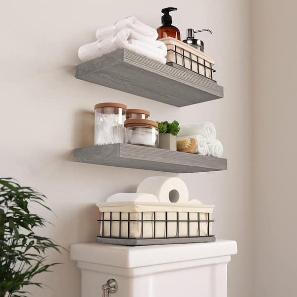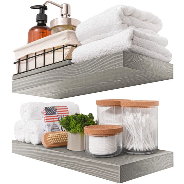 16 in. W x 6.7 in. D Solid ​Wood Grey Decorative Wall Shelf (Set of 2)
