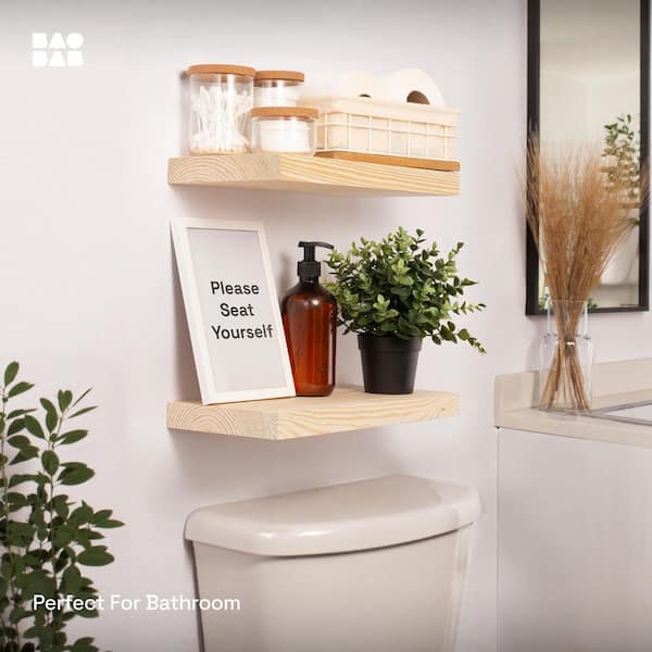 16 in. W x 6.7 in. D Solid ​Wood Unfinished Decorative Wall Shelf (Set of 2)