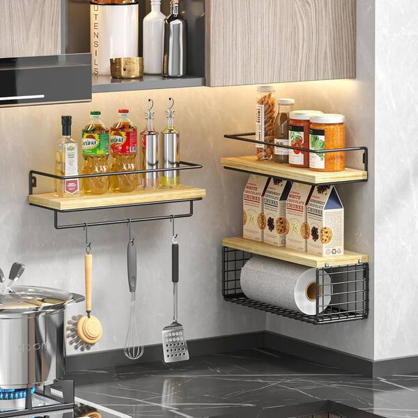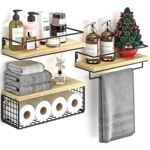 16 in. W x 6 in. D Decorative Wall Shelf, Rustic Brown 3+1 Bathroom Shelves Over Toilet