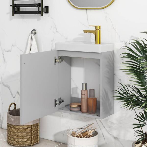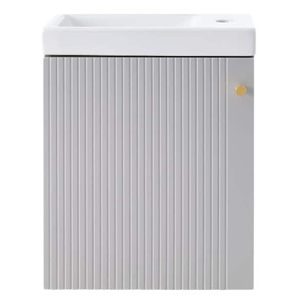 16 in. W x 8.7 in. D x 20.5 in. H Single Sink Wall-Mounted Floating Bath Vanity in Grey with White Ceramic Top
