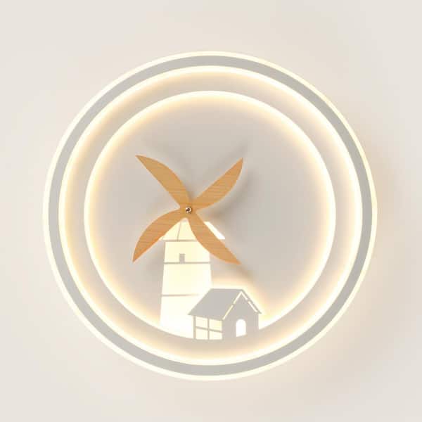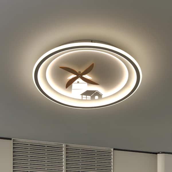 16 in. White Modern Integrated LED Flush Mount Ceiling Light Fixture Dimmable Creative Windmill Rotation For Kid Room