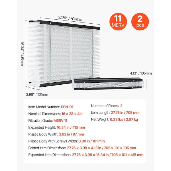 16 in. x 28 in. x 4 in. Furnace Filter, MERV 11 HVAC Ac Filters, 12-Month Electrostatic Pleated Air Conditioner Filters