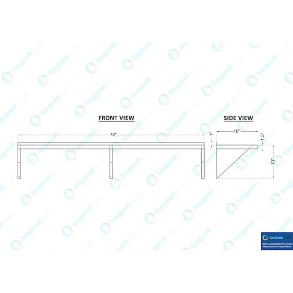 16 in. x 72 in. Stainless Steel Wall Shelf Kitchen, Restaurant, Garage, Laundry, Utility Room Metal Shelf with Brackets