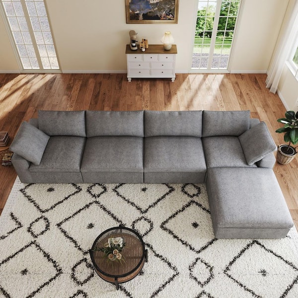 160.6 in. Square 5-piece Linen L-Shaped Free Combination Sectional Sofa with Storage, Removable Cover in. Gray 5-Seater