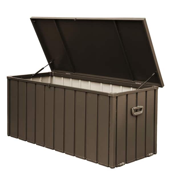 160 Gal. Dark Brown Steel Waterproof Lockable Outdoor Storage Bench with Rolling Castors and Handles