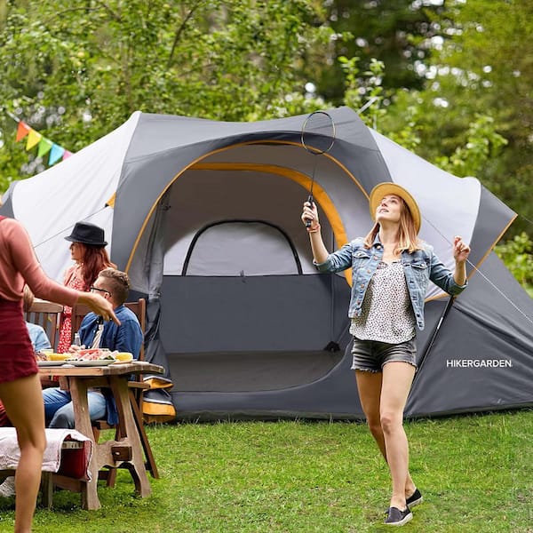 168 in. L x 132 in. W x 74 in. H Gray 10 Person Camping Tent Portable Easy Set Up Family Tent for Camp Hiking