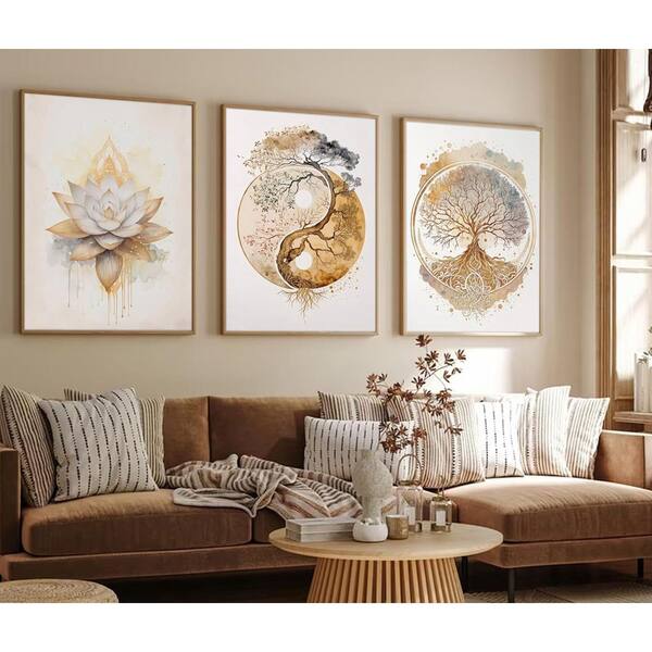 16H in. x 12W in. Framed Tree of Life Canvas Wall Art: Lotus Zen Yin Yang Abstract Fall Print for Home Decoration