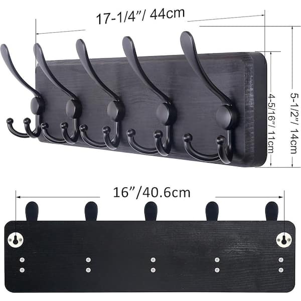 17.25 in. W x 4.3 in. D Black Farmhouse Coat Rack Wall Mount with 5-Triple Hooks Decorative Wall Shelf