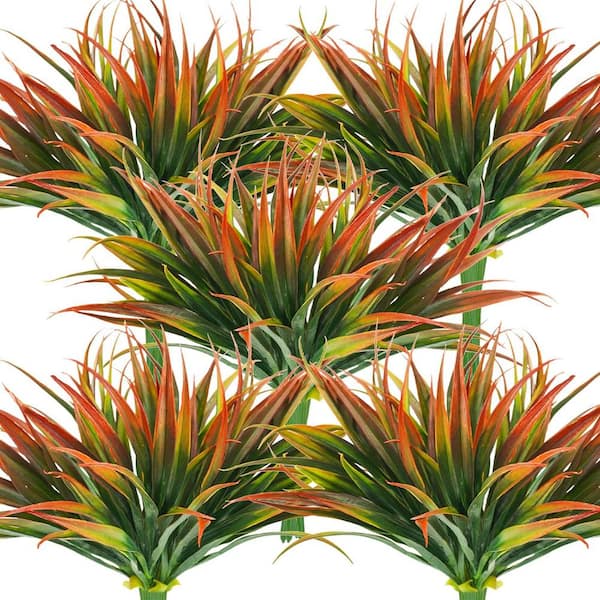 17.3 in. Red Artificial Grass Fake Plants UV Resistant 32-Pieces