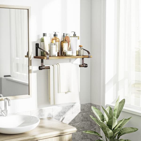 17.3 in. W x 7.3 in. D Decorative Wall Shelf, Brown Floating Shelf Wall Shelf for Storage with 8 Removable Hooks