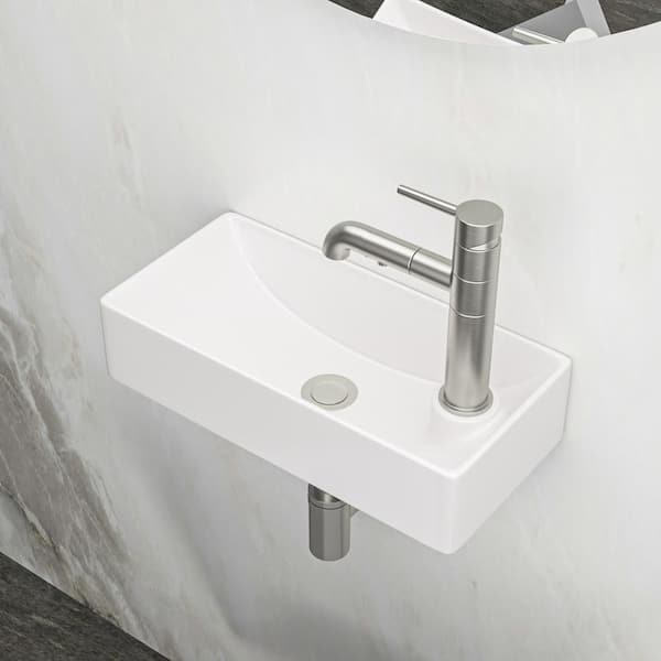 17.30"L x 8.69"W x 3.88"H Compact Wall-Mounted Bathroom Ceramic Sink in White