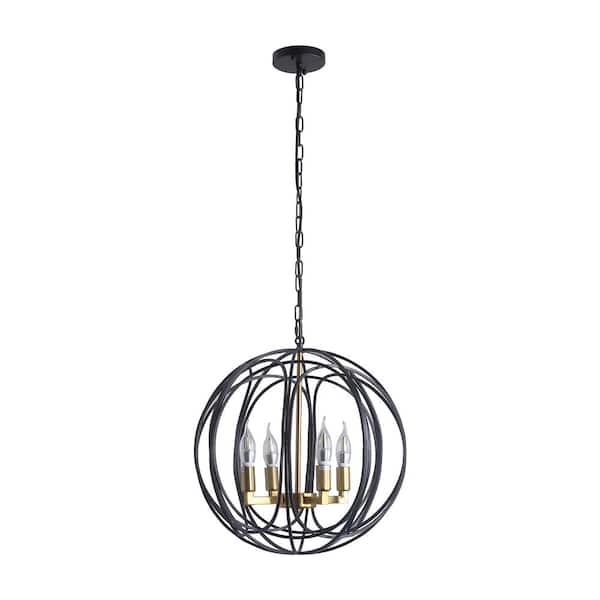 17.7 in. 4-Light Black Spherical Cage Pendant Light with Adjustable Chain