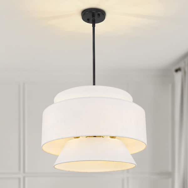 17.7 in. 4-Light White Modern Fabric Drum Chandelier with Linen Shade for Living Room Bedroom Dining Room