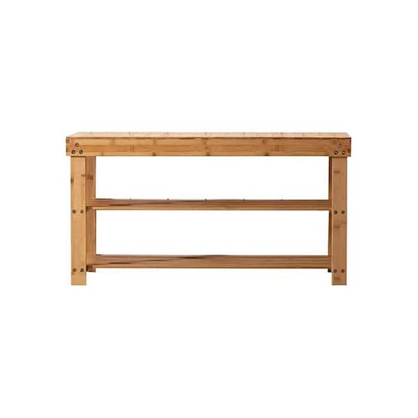 17.7 in. H x 34 in. W 3 Tier Natural Shoe Storage Bench Storage Organizer