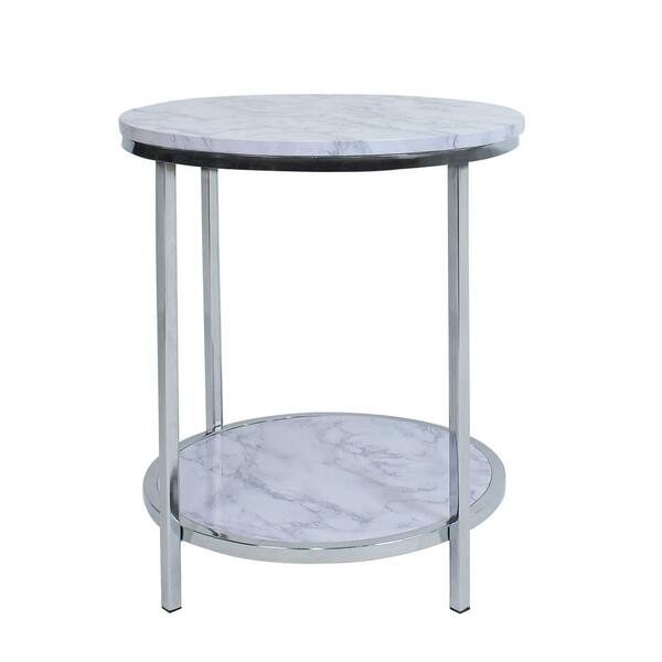 17.7 in. Silver Frame and Faux Marble Round MDF 2-Tier End Table with Steel Frame
