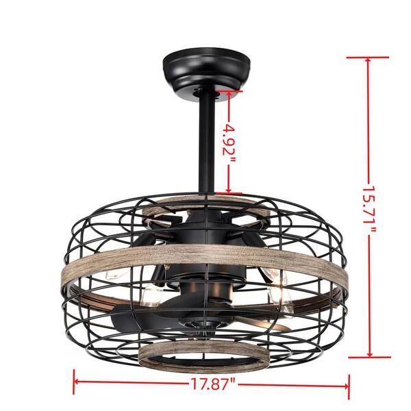 17.87 in. Farmhouse Indoor Matte Black Caged Ceiling Fans with Remote Control