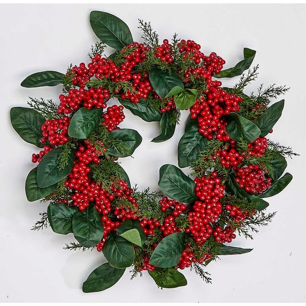 17 in. Artificial Berry Leaf Wreath on Natural Twig Base