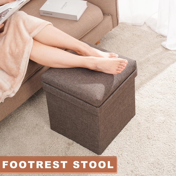 17 in. Brown MDF Cotton Linen Foldable Storage Footstool