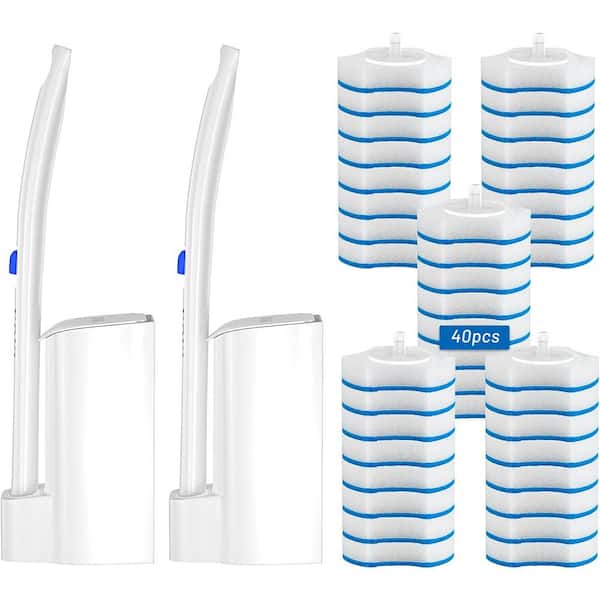 17 in. Disposable Toilet Brush Toilet Bowl Cleaner Brush w/ 40-Piece Toilet Brush & Storage Caddy for Bathroom Set of 2