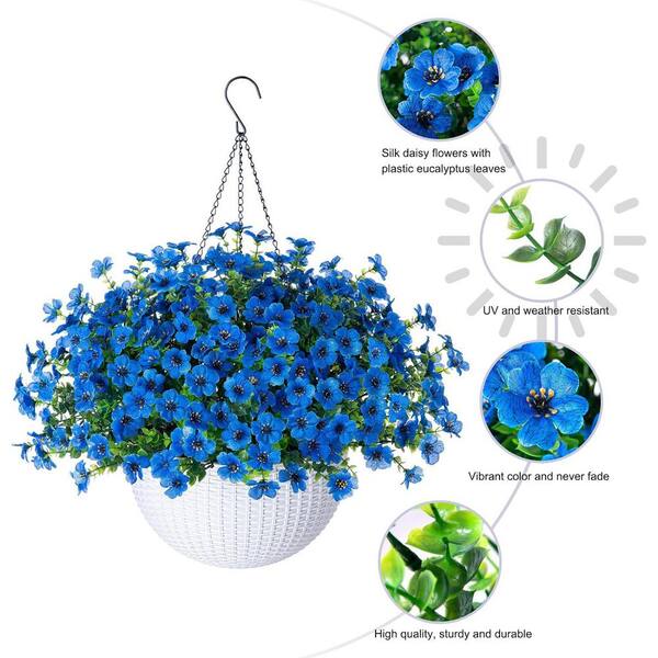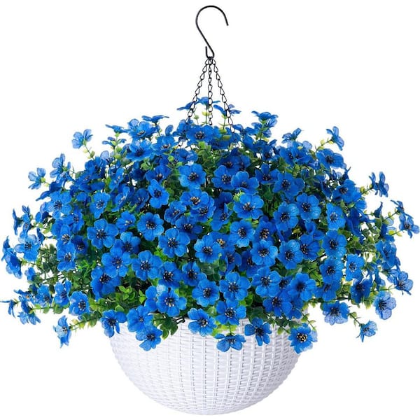 17 in. H Artificial Hanging Silk Orchid Flowers in Basket, Outdoor Indoor Patio Lawn Garden Decor, Blue