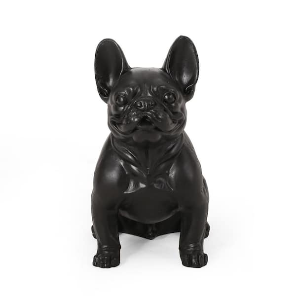 17 in. Matte Black Glass French Bulldog Garden Statue Outdoor Indoor Decoration