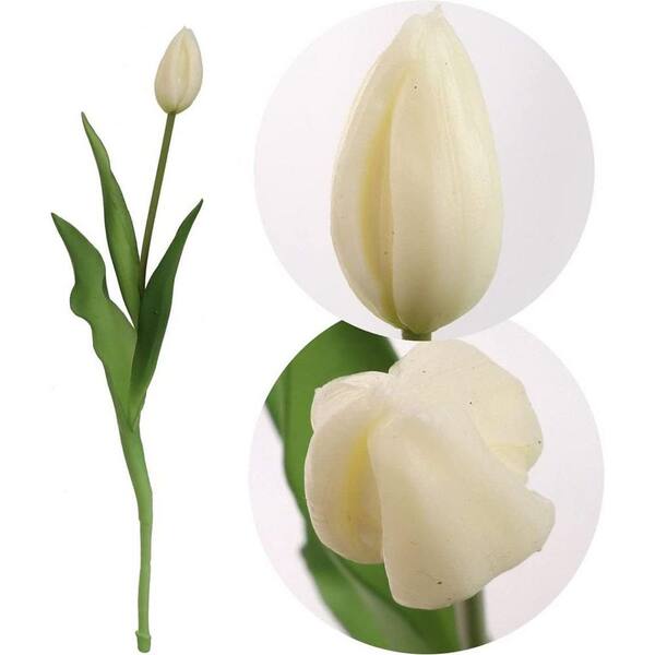 17 in. Real Touch Artificial Cream Tulip Bud Stems 6-Pack