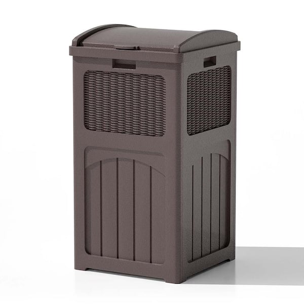 17 in. W x 17 in. D x 32 in. H Brown Plastic Trash Can Storage 35 gal Hideaway Trash Can for Patio Resin with Lid