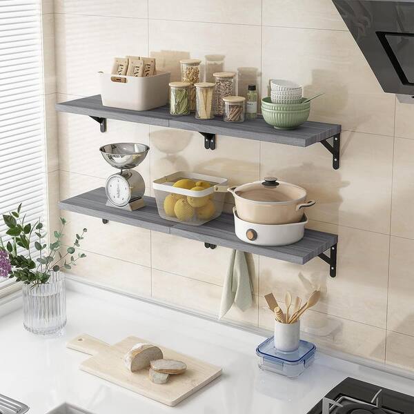 17 in. W x 6.2 in. D x 3.7 in. H in. Gray Decorative Wall Shelf, Set of 4