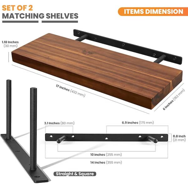 17 in. W x 6 in. D Brown Acacia Wood Floating Shelves Decorative Wall Shelf Set of 2