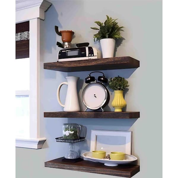 17 in. W x 6 in. D Walnut Wood Decorative Wall Shelf - Set Of 4