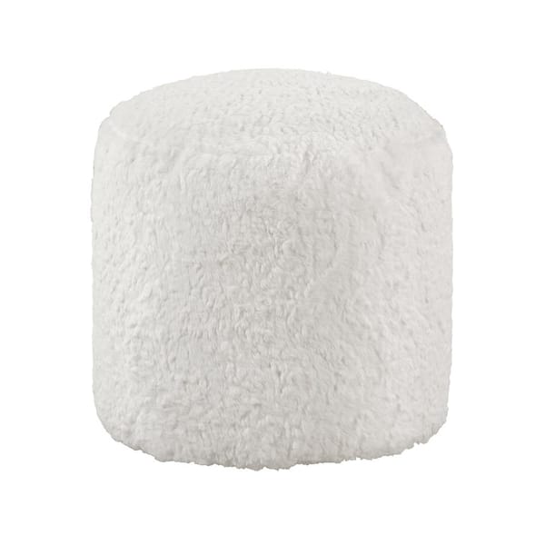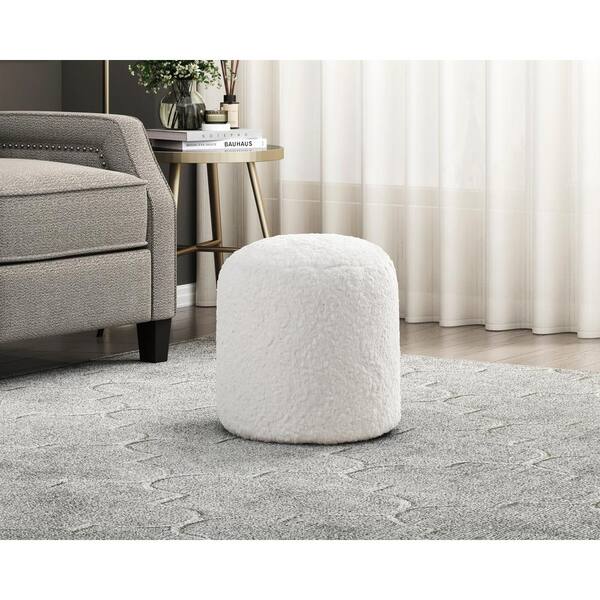 17 in. x 16 in. Modern Pouf Off-White Faux Fur Fabric Upholstered Ottoman by Framed Wooden Wall Art