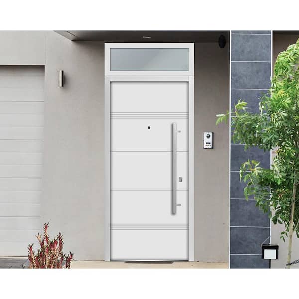 1705 36 in. x 96 in. Left-Hand/Inswing White Enamel Steel Prehung Front Door with Hardware