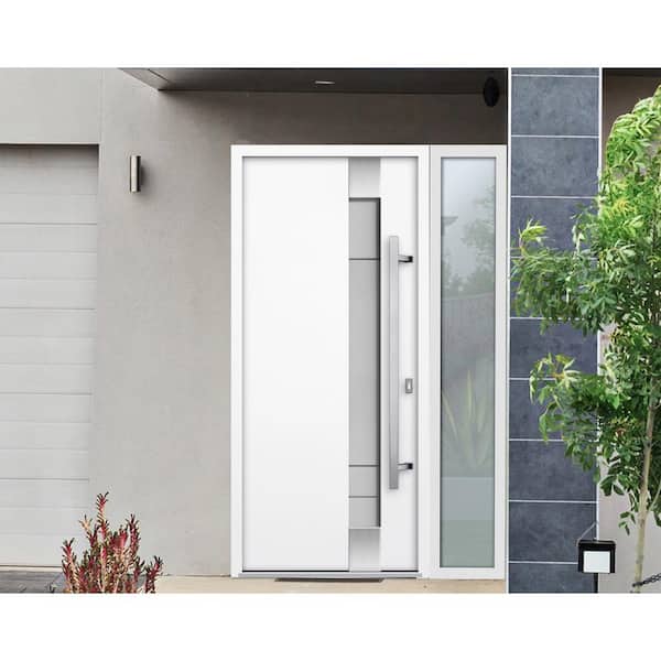 1713 50 in. x 80 in. Left-hand Inswing Frosted Glass White Enamel Steel Prehung Front Door with Hardware