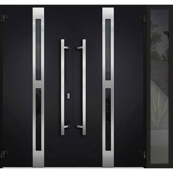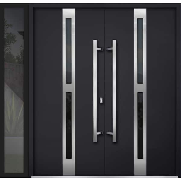 1755 84 in. x 80 in. Left-hand/Inswing Sidelite Tinted Glass Black Enamel Steel Prehung Front Door with Hardware