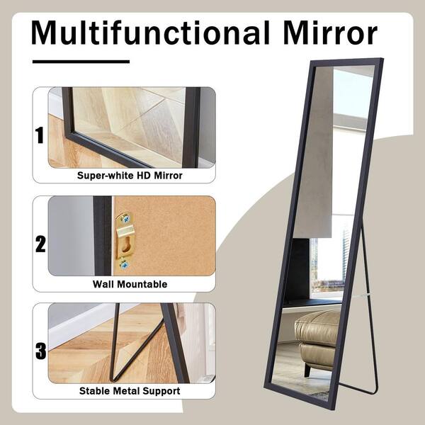 18.1 in. W x 57.9 in. H Rectangle Solid Wood Frame Black Full-Length Mirror