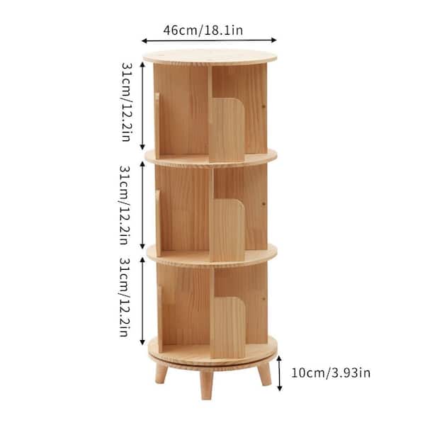 18.1 in. Wide Wood Color 3-Shelf Floor Standing Rotating Bookcase