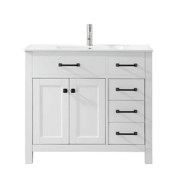 18.10 in. W x 36.2 in. D x 31.5 in. H Single Sink Bath Vanity in White Cabinet with white Ceramic Top and Mirror